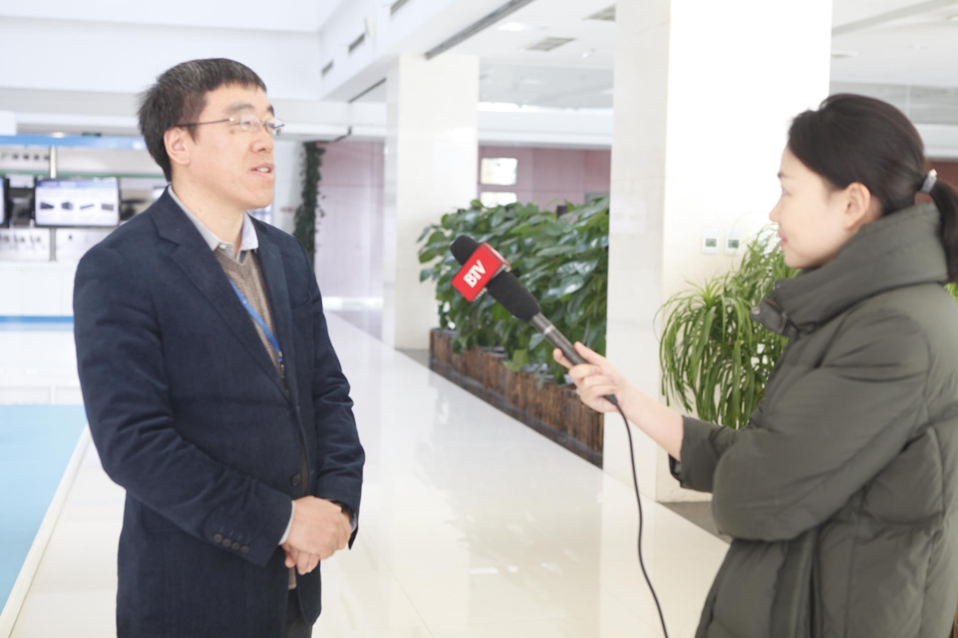 2019年2月20日,北京电视台记者为调研全市高精尖产业在2019年的开局情况,特安排来访和利时北京基地,实地了解作为北京市高新技术企业代表的和利时集团在开年之初呈现出了哪些崭新气象,又将在新的一年推出哪些创新之举。和利时集团副总经理何春明接受记者采访,集团公共事务部总经理贾峰陪同记者参观和利时智能制造数字化车间。